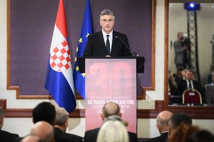 Prime Minister Andrej Plenković participated today in the international conference "30 years after Dayton: leading the way with local solutions". On that occasion, he emphasized that Croatia, as a guarantor of the Dayton Agreement and as a member of the European Union and NATO, will not give up its commitment to stability, equality and the European path of Bosnia and Herzegovina. "Our only interest is the same one that we defended in the 1990s. A stable, functional and prosperous neighboring country in which Bosniaks, Serbs and Croats, like all other citizens, enjoy equal rights and equal dignity and where no one feels like a second-class citizen in their own country", he said. It is crucial to implement the Constitution in a way that strengthens, not undermines, trust between the three constituent peoples and to avoid practices that deviate from the spirit of the agreement or create unnecessary and harmful misunderstandings.