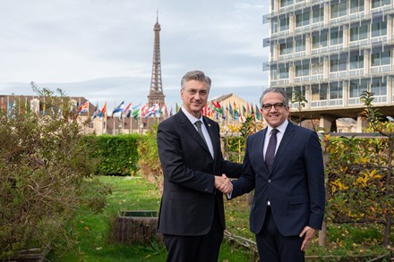 Službeni posjet Francuskoj predsjednik Vlade Andrej Plenković završio je sastankom s glavnim ravnateljem UNESCO-a Halidom El-Enanijem.