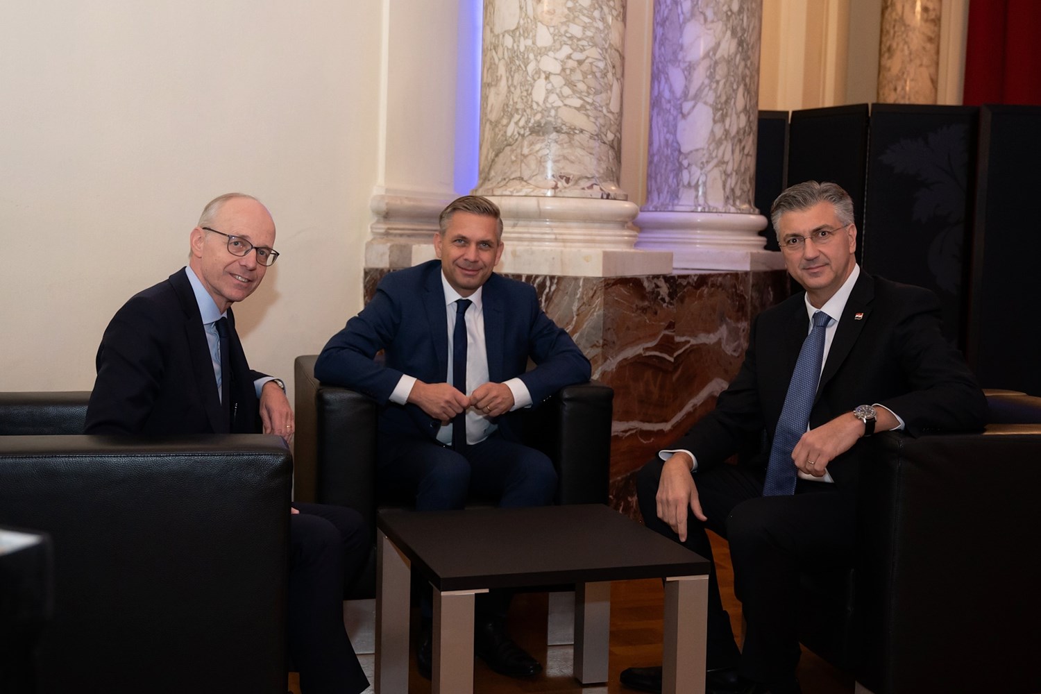 Prime Minister Andrej Plenković participated, together with Luxembourg Prime Minister Luc Frieden, in a meeting of the Trilateral Commission for Europe in Vienna, which was attended by a number of representatives from North America, Europe and Asia. After the panel, Prime Ministers Plenković and Frieden spoke by phone with President Zelenskyy about the peace plan for Ukraine.