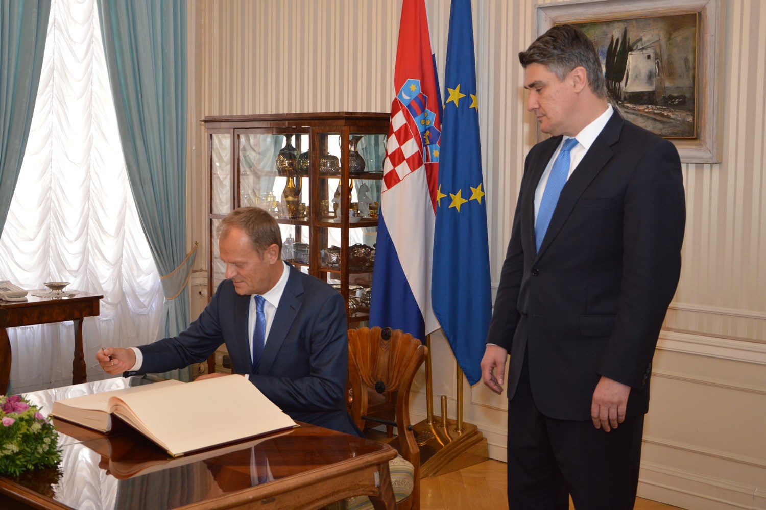 Predsjednik Europskog vijeća Donald Tusk kazao je da je s premijerom Milanovićem razgovarao o izazovima koji su pred Europom u nadolazećim mjesecima, a pitanje migracija svakako je najveći izazov. Najavio je da će se za dva tjedna sastati ministri pravosuđa i unutarnjih poslova Europske unije kako bi procijenili situaciju na terenu i dogovorili sljedeće korake. „Migracijska kriza nije krivnja Europe, ali moramo učiniti više, na europskoj razini, kako bismo na nju odgovorili“, rekao je predsjednik Tusk ističući kako je nakon današnjeg sastanka s premijerom Milanovićem „puno više optimističan nego prije par dana“. Također je dodao da su razgovarali i o dnevnom redu sastanka Europskog vijeća koji će se održati u listopadu, te o gospodarskoj situaciji u Grčkoj, kao i o budućnosti Velike Britanije u Europskoj uniji. Razgovarali su i o situaciji na zapadnom Balkanu i o načinima na koje Europska unija može pomoći zemljama u regiji na putu prema većoj stabilnosti i prosperitetu. „Čvrsto vjerujem da je perspektiva proširenja naša najsnažnija prednost u promoviranju reformi i vrijednosti Europske unije. Nastavit ćemo činiti sve što možemo kako bismo pomogli zemljama u regiji na njihovom europskom putu“, rekao je predsjednik Europskog vijeća.