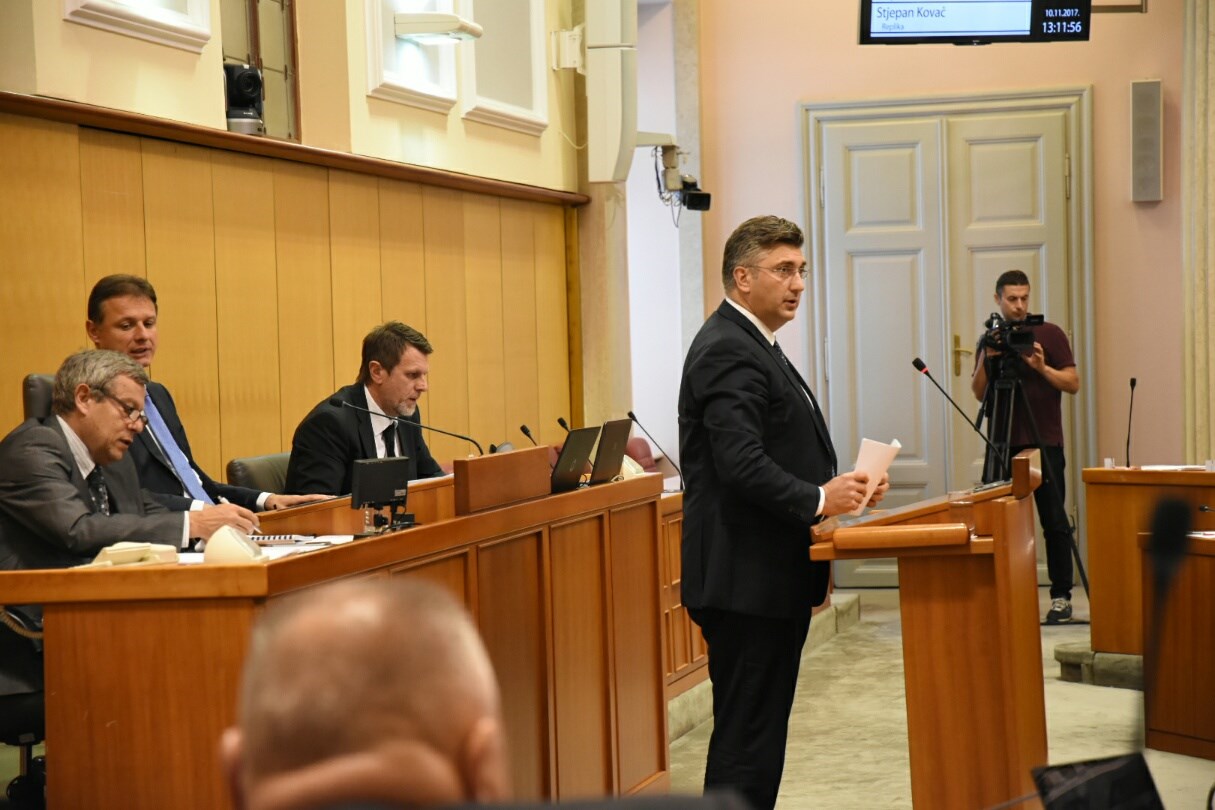 Predsjednik Vlade Republike Hrvatske Andrej Plenković sudjeluje danas u Hrvatskome saboru u raspravi o povjerenju Vladi Republike Hrvatske, koju je pokrenuo 31 zastupnik oporbe.