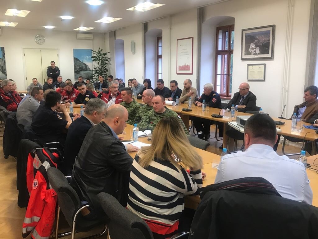 Uvodno je zahvalio gradonačelniku Duspari, brodsko-posavskom županu Marušiću, kao i svim pripadnicima Državne uprave za zaštitu i spašavanje, Crvenog križa, policije, vatrogasaca i svima koji su angažirani u kriznoj situaciji proteklih dana u Slavonskom Brodu. Predsjednik Vlade rekao je da je sastanak poslužio da se u cijelosti informiraju o aktualnoj situaciji glede onečišćenja vodocrpilišta Jelas.