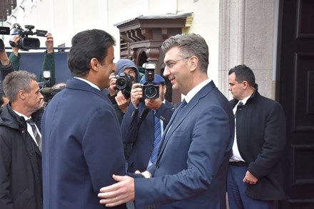 Predsjednik Vlade Andrej Plenković primio je danas u Banskim Dvorima emira Države Katar šeika Tamima bin Hamada bin Khalifa Al Thanija, koji je u službenom posjetu Hrvatskoj. Uz njega su bili ministar zaštite okoliša i energetike Tomislav Ćorić i ministrica kulture Nina Obuljen Koržinek.