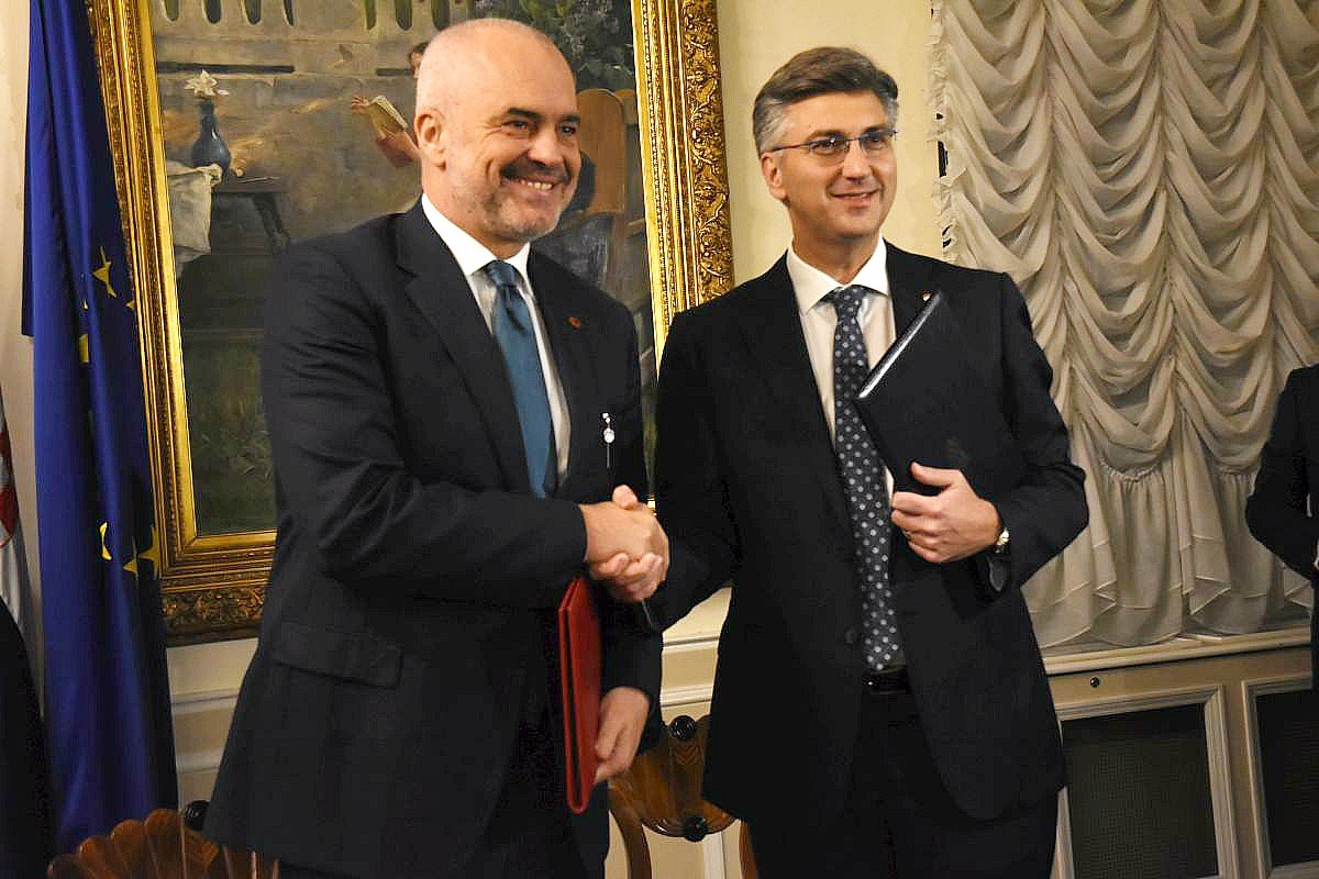 Predsjednik Vlade Andrej Plenković primio je danas u Banskim dvorima predsjednika Vlade Albanije Edija Ramu koji u Zagrebu boravi na sastanku na vrhu Srednjoeuropske inicijative.