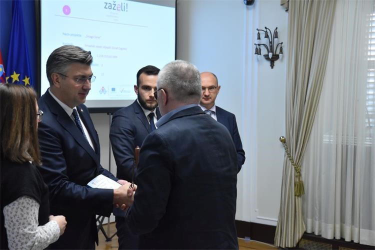 Ugovore o dodjeli bespovratnih sredstava u okviru Poziva Zaželi uručili su predsjednik Vlade Andrej Plenković, ministar rada i mirovinskog sustava Josip Aladrović te ravnatelj HZZ-a Ane Lončar, a nazočnima se na kraju svečanosti, u ime svih korisnika, obratio Mato Grgić, načelnik općine Garčin.