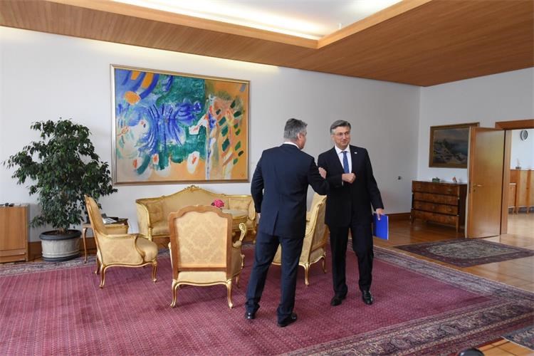 Predsjednik dosadašnje i mandatar nove Vlade Andrej Plenković zahvalio je predsjedniku Republike na povjerenom mandatu za sastavljanje nove Vlade Republike Hrvatske slijedom rezultata na izborima za Hrvatski sabor koji su održani 5. srpnja.
