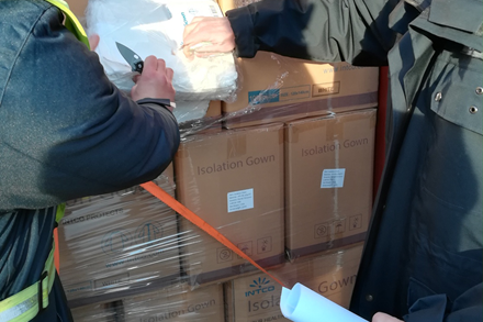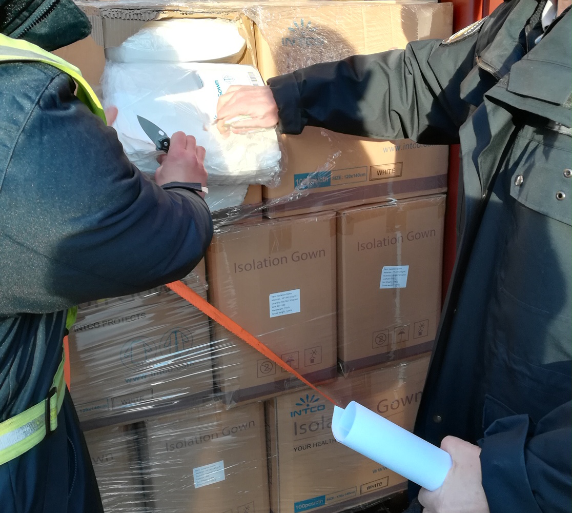 Brodom Rabelais, koji plovi pod malteškom zastavom, dopremljeno je oko 14 tona zaštitnih kirurških kapa (590.000 komada) i odijela (80.000 komada), ukupne vrijednosti oko 207.000,00 USD.