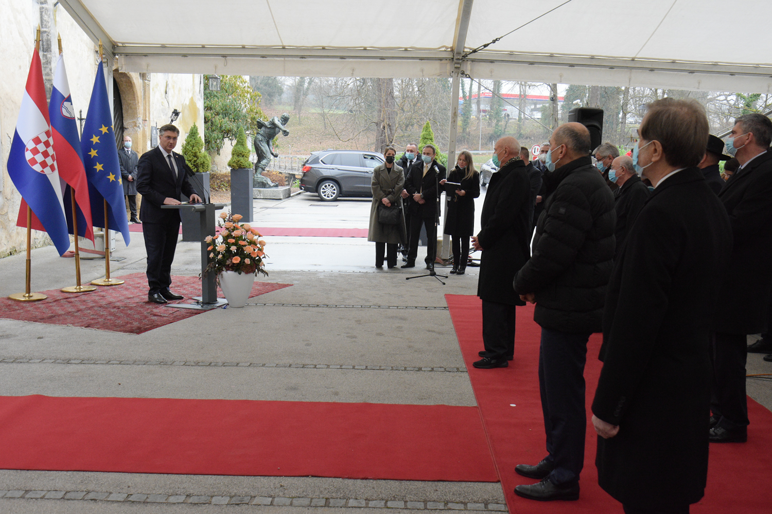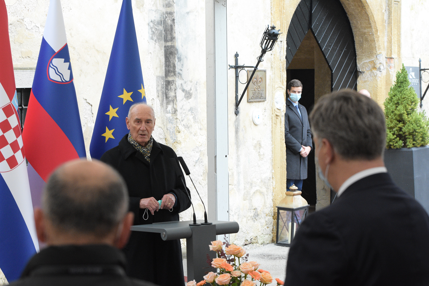 Uz predsjednika hrvatske Vlade Plenkovića i njegovog slovenskog kolege Janeza Janše, otkrivanju spomen-ploče kojom se obilježava sastanak delegacija dviju vlada, na kojem se, 1991. godine, u dvorcu Otočec razgovaralo o pitanjima neovisnosti i međusobnoj pomoći u slučaju napada JNA, sudjelovali su bivši predsjednici Vlada Franjo Gregurić i Alojz Peterle.