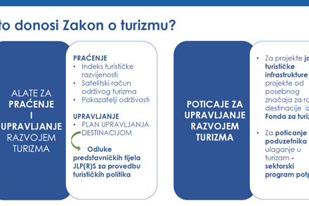 Zakon će dati okvir kako upravljati razvojem turizma u skladu s načelima održivosti, pa tako predviđa i alate za praćenje - indeks turističke razvijenosti, satelitski račun održivog turizma i pokazatelje održivosti.