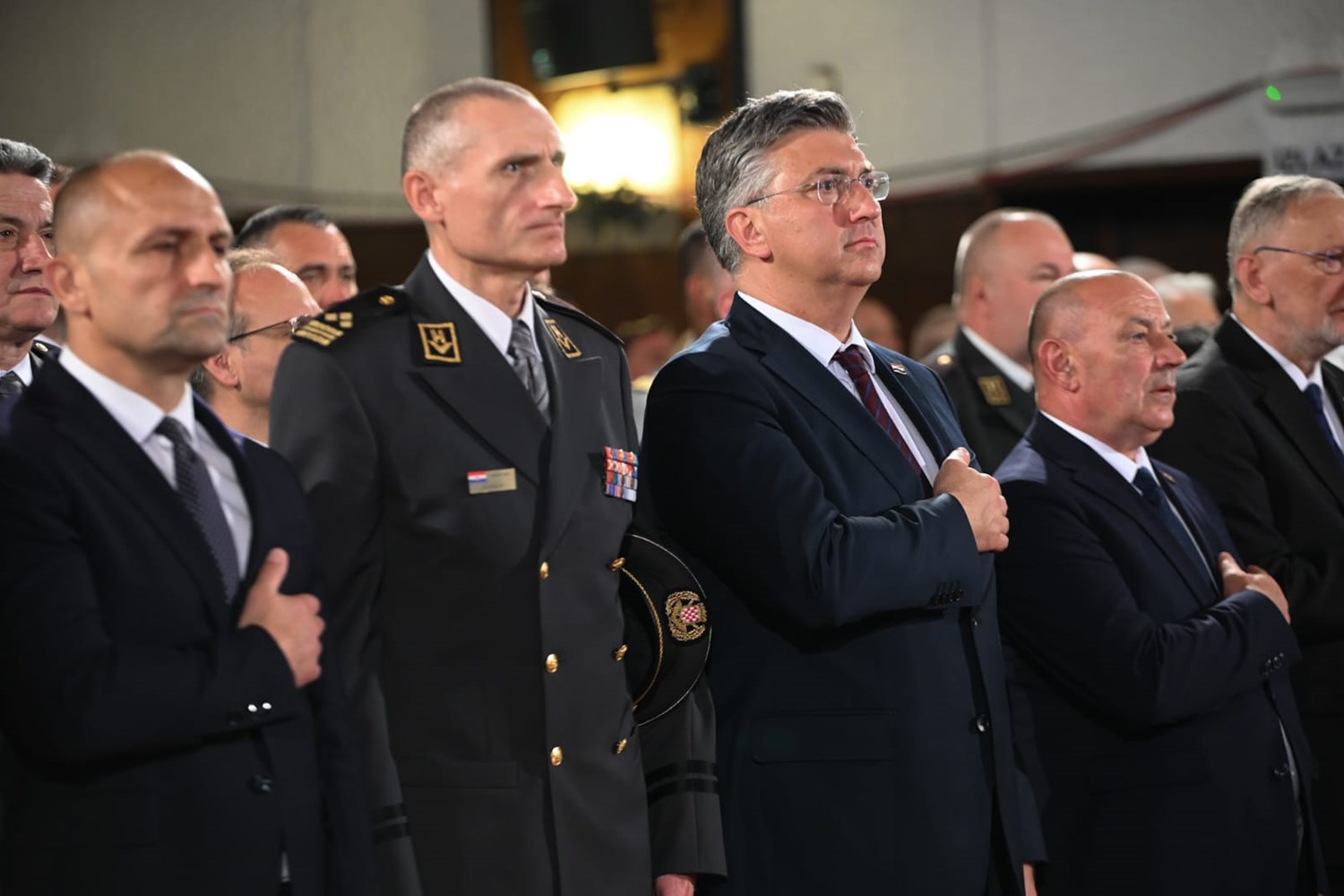 Uz predsjednika Vlade bili su potpredsjednik Vlade i ministar obrane Ivan Anušić, potpredsjednik Vlade i ministar hrvatskih branitelja Tomo Medved, potpredsjednik Vlade i ministar unutarnjih poslova Davor Božinović, potpredsjednik Vlade i ministar poljoprivrede, šumarstva i ribarstva Josip Dabro te ministar vanjskih i europskih poslova Gordan Grlić Radman.