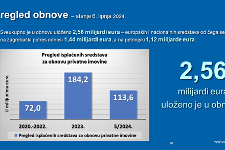 Bačić je podsjetio da je u veljači 2023. godine donesen novi Zakon o obnovi čime je taj proces obnove zakonski, financijski i operativno bolje strukturiran.