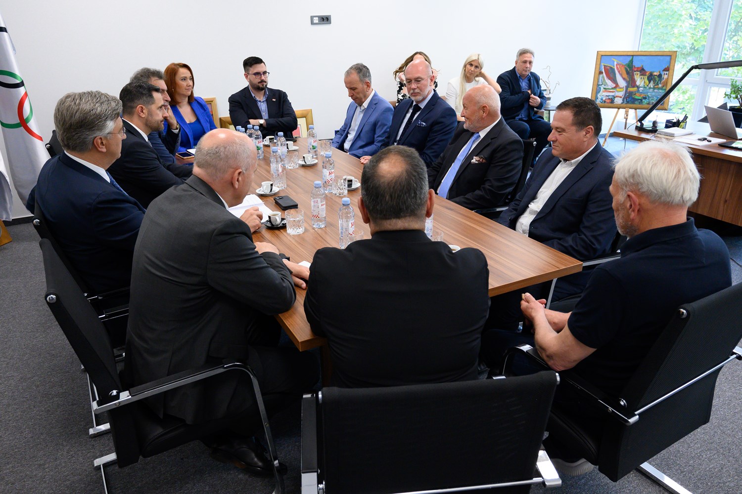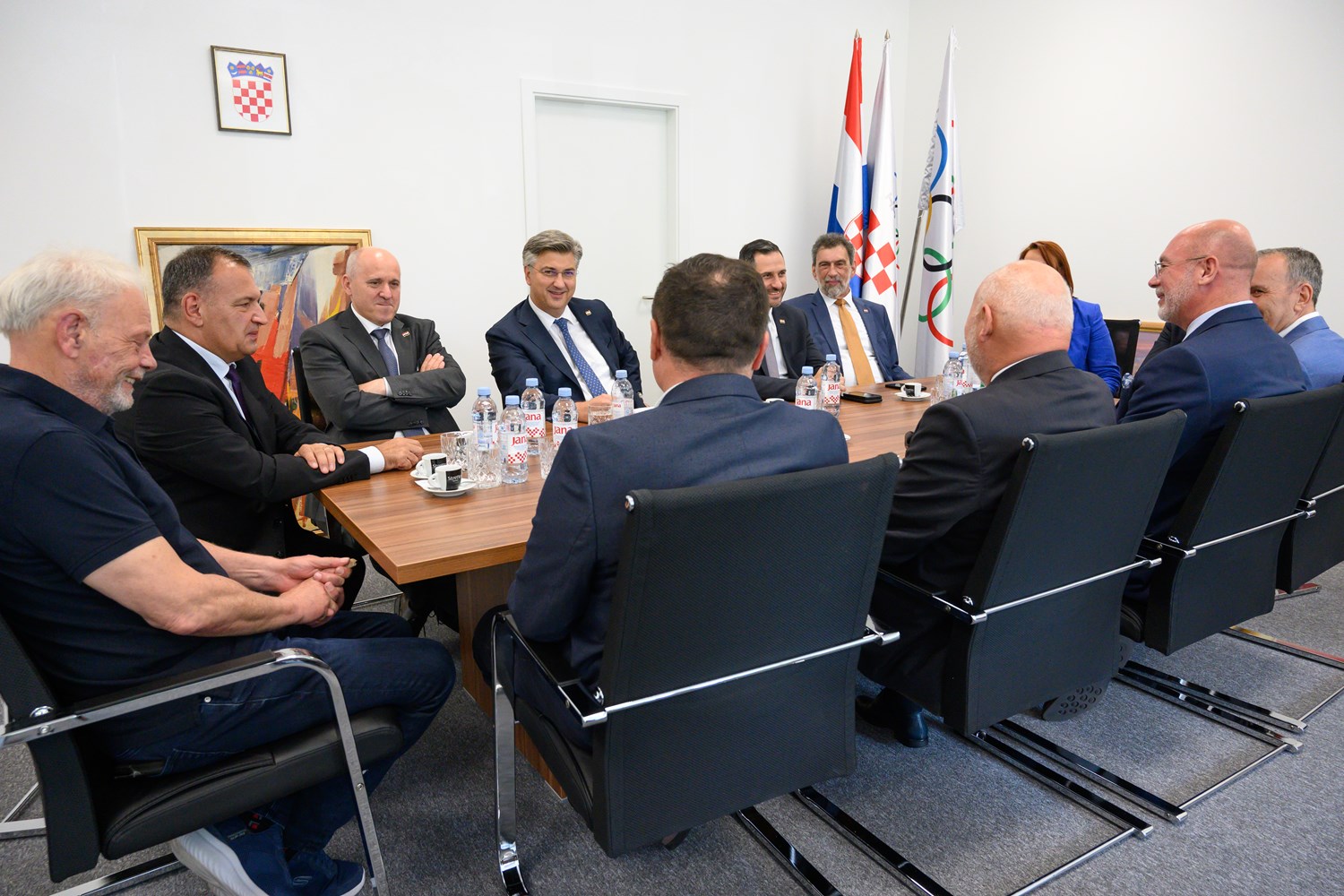 Direktori Hrvatskog olimpijskog odbora, Damir Šegota i Ranko Ćetković, informirali su predsjednik Vlade o brojčanom stanju hrvatskog izaslanstva (73 sportaša i sportašice iz 16 sportova, ukupno 157 članova izaslanstva) na Olimpijskim igrama u Parizu te o projektu Hrvatske kuće na Olimpijskim igrama u Parizu, koja će predstavljati poveznicu hrvatskog i francuskog gospodarstva te biti mjestom za susrete Hrvata koji će tih dana boraviti u francuskoj prijestolnici.