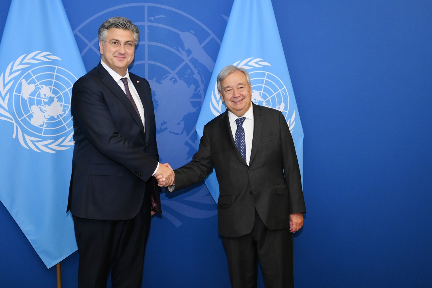 Premijer se u New Yorku sastao i s glavnim tajnikom UN-a Antioniom Guterresom, s kojim je razgovarao o doprinosu Hrvatske Ujedinjenim narodima, mirovnim misijama i zaštiti ljudskih prava. Bilo je riječi i o situaciji u hrvatskom susjedstvu i kriznim žarištima u svijetu.