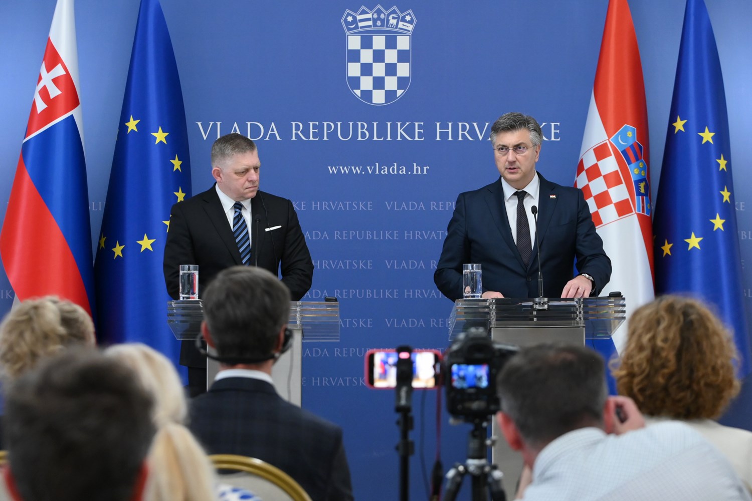 Danas je bila prigoda da još jednom stavimo u prvi plan bilateralne odnose između naših zemalja, da konstatiramo da se politička suradnja i kvalitetni odnosi između Hrvatske i Slovačke unaprjeđuju i nadograđuju na povijesnim vezama i prijateljstvu, poručio je predsjednik Vlade Andrej Plenković nakon sastanka sa slovačkim kolegom Robertom Ficom. Dodao je da su sastanak iskoristili i za ponovno iskazanu potporu Ukrajini koja je žrtva ruske agresije.