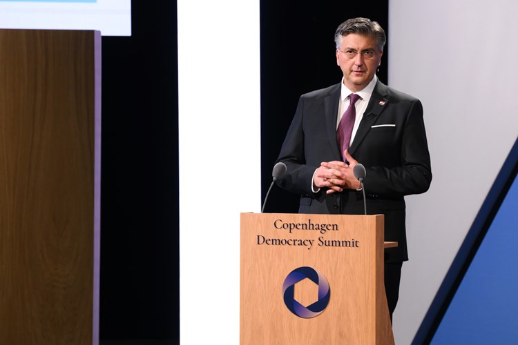 Sudjelujući na Copenhagen Democracy Summitu, predsjednik Vlade Andrej Plenković govorio je na panelu o Ukrajini, jačanju europske obrane i budućnosti Europe. Potrebno je postići pravedan i održiv mir uz sigurnosna jamstva za Ukrajinu, kazao je i dodao da bi rješenje koje bi nagradilo agresora i opravdalo kršenje međunarodnog prava bilo dugoročno loše za Ukrajinu, Europu i cijeli svijet. Na sastanku s danskom premijerkom Frederiksen razgovarao je o jačanju hrvatskog izvoza u Dansku i bilateralne suradnje između dviju država.