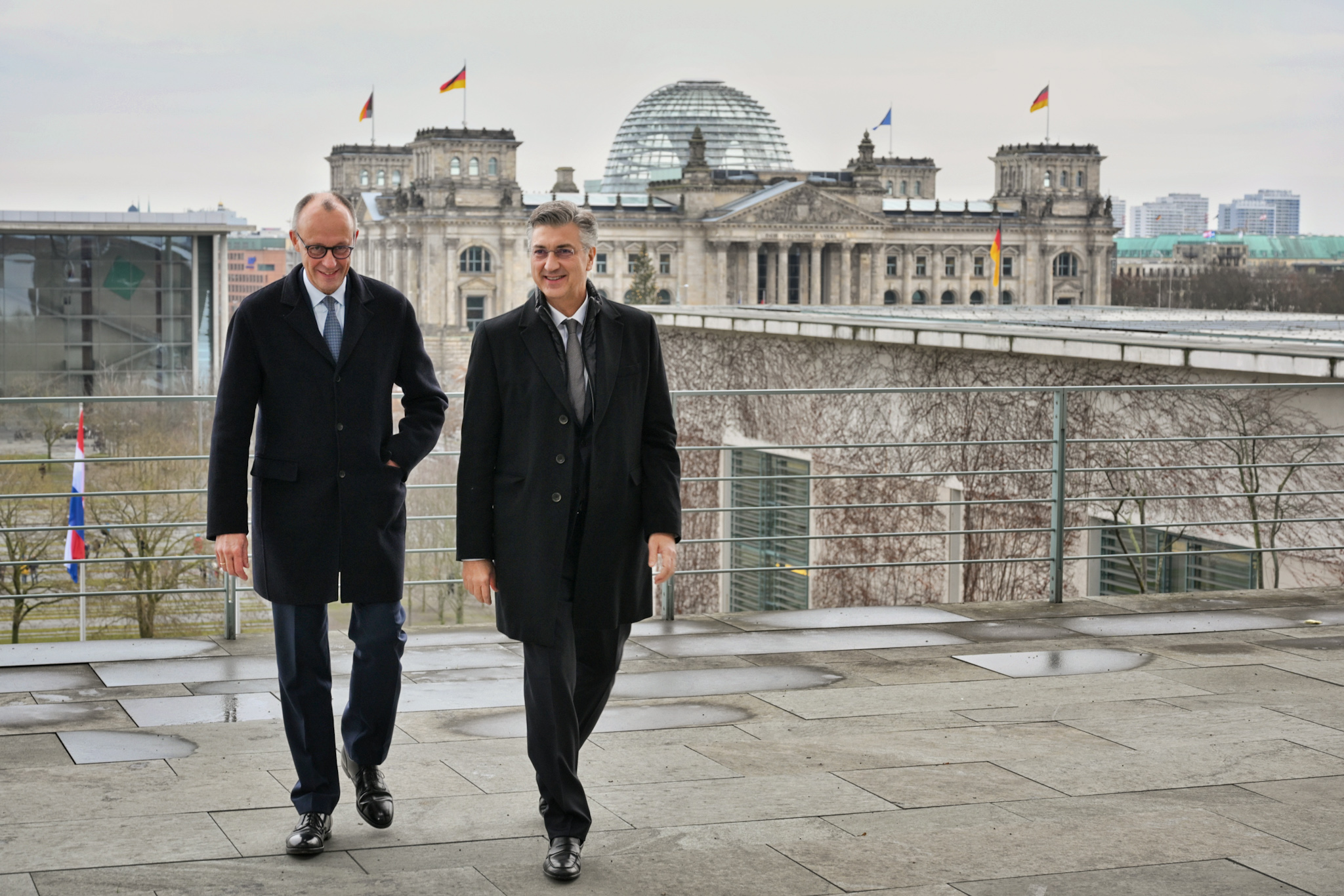 Prime Minister Andrej Plenković met today in Berlin with the Federal Chancellor of Germany, Friedrich Merz, with whom he discussed bilateral relations, strengthening economic cooperation and the procurement of 44 Leopard tanks, the most modern tanks available on the market. They also discussed key topics for the future of the European Union in view of the meeting of the European Council, finding a solution for further financial support to Ukraine, as well as international efforts to achieve a lasting and just peace in that country.