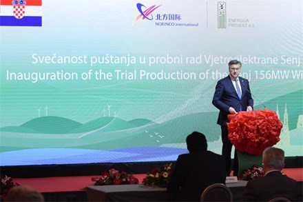 The wind farm was opened remotely by Prime Minister Andrej Plenković, who pressed the button at a ceremony in the Hotel Sheraton in Zagreb, with representatives of the Chinese company attending.