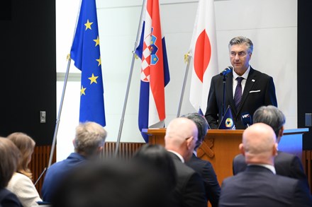 Uvodno je poručio kako je njegov posjet snažna poruka partnerstva Hrvatske i Japana i prilika za daljnje unaprjeđenje bilateralnih odnosa, izrazivši duboko poštovanje prema bogatoj kulturi i povijesnom naslijeđu Japana, kao i njegovoj ulozi partnera i saveznika u današnjem sve složenijem geopolitičkom okruženju.