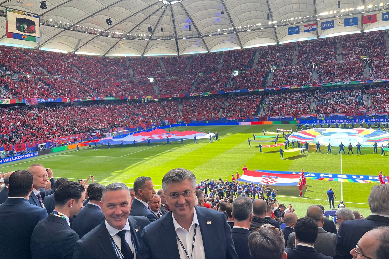Na poziv predsjednika UEFA-e Aleksandra Čeferina, predsjednik Vlade Andrej Plenković prisustvovao je drugoj utakmici skupine B Europskog nogometnog prvenstva između Hrvatske i Albanije na Volksparkstadionu u Hamburgu.