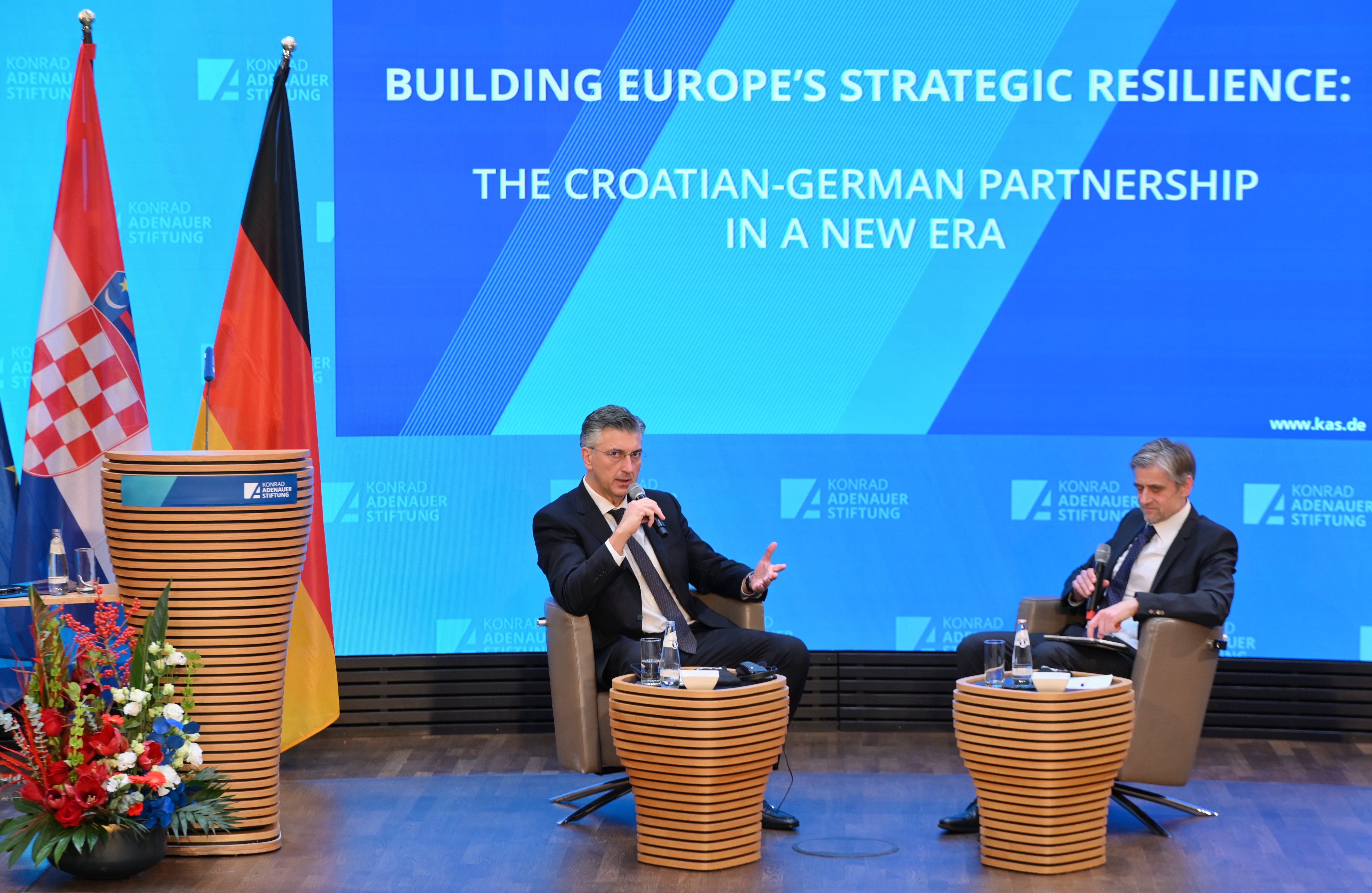 Predsjednik Vlade Andrej Plenković doputovao je danas u Berlin u dvodnevni posjet Saveznoj Republici Njemačkoj, koji je započeo predavanjem u Zakladi Konrad Adenauer na temu: „Izgradnja strateške otpornosti Europe: hrvatsko-njemačko partnerstvo u novom dobu“, u kojem je predstavio hrvatski pogled o ključnim izazovima s kojima se danas suočava Europska unija, kao i prilikama koje sve zemlje članice trebaju zajedno iskoristiti. Govorio je i o suradnji Hrvatske i Njemačke, od hrvatskog osamostaljenja do danas, posebno pritom istaknuvši značaj i doprinos hrvatske zajednice u Njemačkoj.