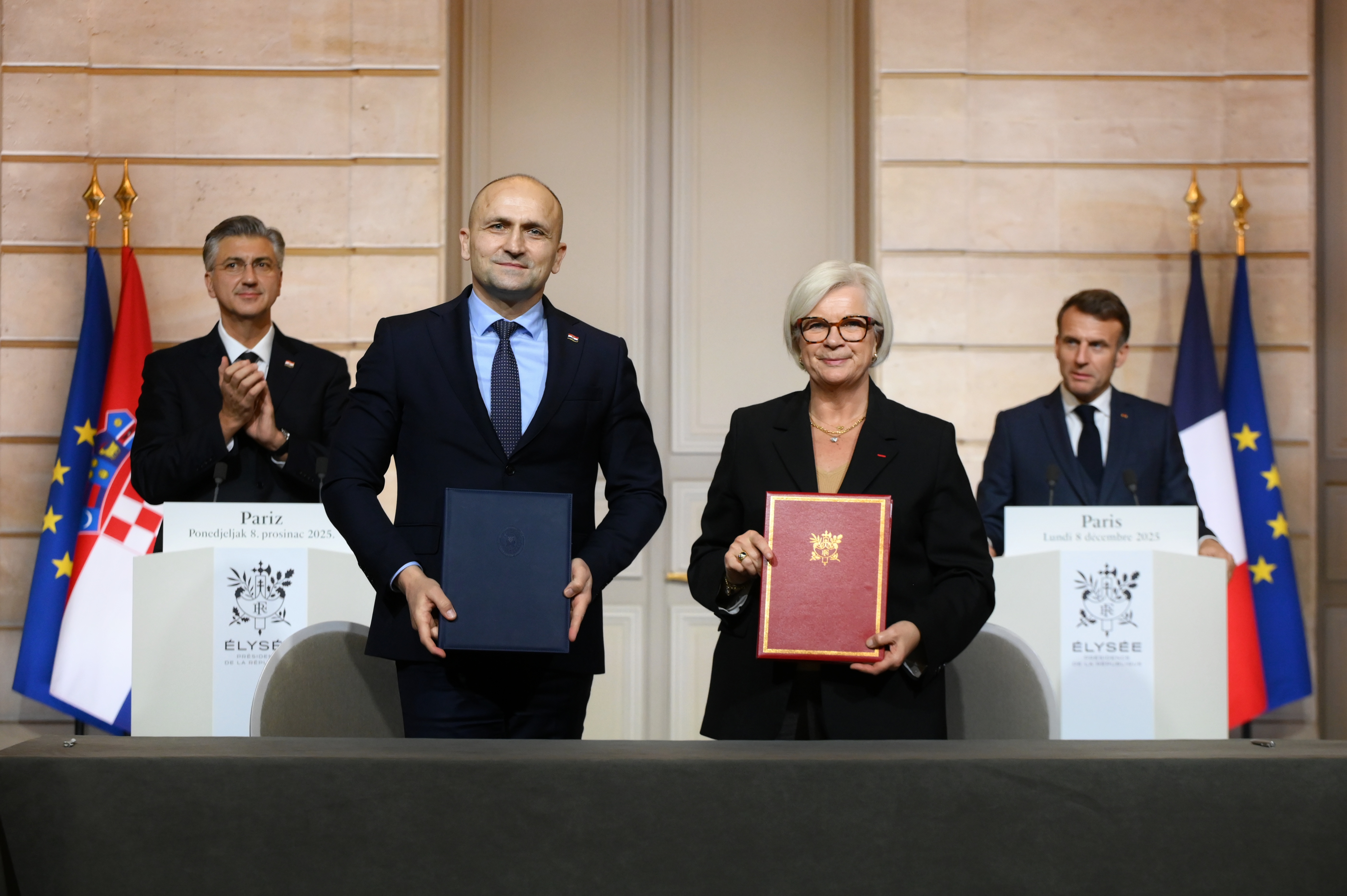 Trogodišnji Akcijski plan za razdoblje 2026.-2028. potpisali su hrvatski ministar vanjskih i europskih poslova Gordan Grlić Radman i francuski delegirani ministar za Europu i vanjske poslove Benjamin Haddad, Ugovor za nabavu samohodnih haubica Caesar MK2 za Hrvatsku vojsku i Pismo namjere o nabavi poboljšanih sposobnosti zrakoplova Rafale za Hrvatsko ratno zrakoplovstvo potpredsjednik Vlade i ministar obrane Ivan Anušić i francuska ministrica oružanih snaga i branitelja Catherine Vautrin.U izjavi za medije nakon potpisivanja sporazuma, francuski predsjednik Emmanuel Macron poručio je da potpisani Akcijski plan definira nova područja za produbljenje suradnje na dobrobit naših dvaju naroda i zajedničkog djelovanja unutar Europske unije.