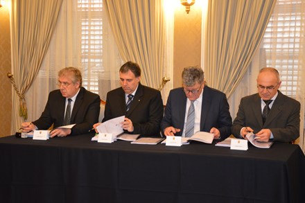 Ugovore su potpisali ministrica regionalnoga razvoja i fondova Europske unije Gabrijela Žalac, ministar zdravstva Milan Kujundžić, ravnatelj Središnje agencije za financiranje i ugovaranje programa i projekata Europske unije (SAFU) Tomislav Petric, ravnateljica Opće bolnice Vukovar i bolnice hrvatskih veterana Vesna Bosanac, ravnatelj Opće bolnice Zabok i bolnice hrvatskih veterana Tihomir Vančina, ravnateljica Opće bolnice Virovitica Mirjana Peček, ravnatelj Kliničke bolnice ''Sveti Duh'' Mladen Bušić, ravnatelj Kliničkog bolničkog centra Sestre milosrdnice Mario Zovak, ravnatelj Opće bolnice „Dr. Josip Benčević“ Slavonski Brod Josip Samardžić, ravnatelj Opće bolnice Karlovac Ervin Jančić, ravnatelj Kliničkog bolničkog centra Rijeka Davor Štimac, ravnatelj Kliničkog bolničkog centra Zagreb Ante Ćorušić, ravnateljica Opće bolnice Pula Irena Hrstić i ravnatelj Opće bolnice Zadar Željko Čulina.