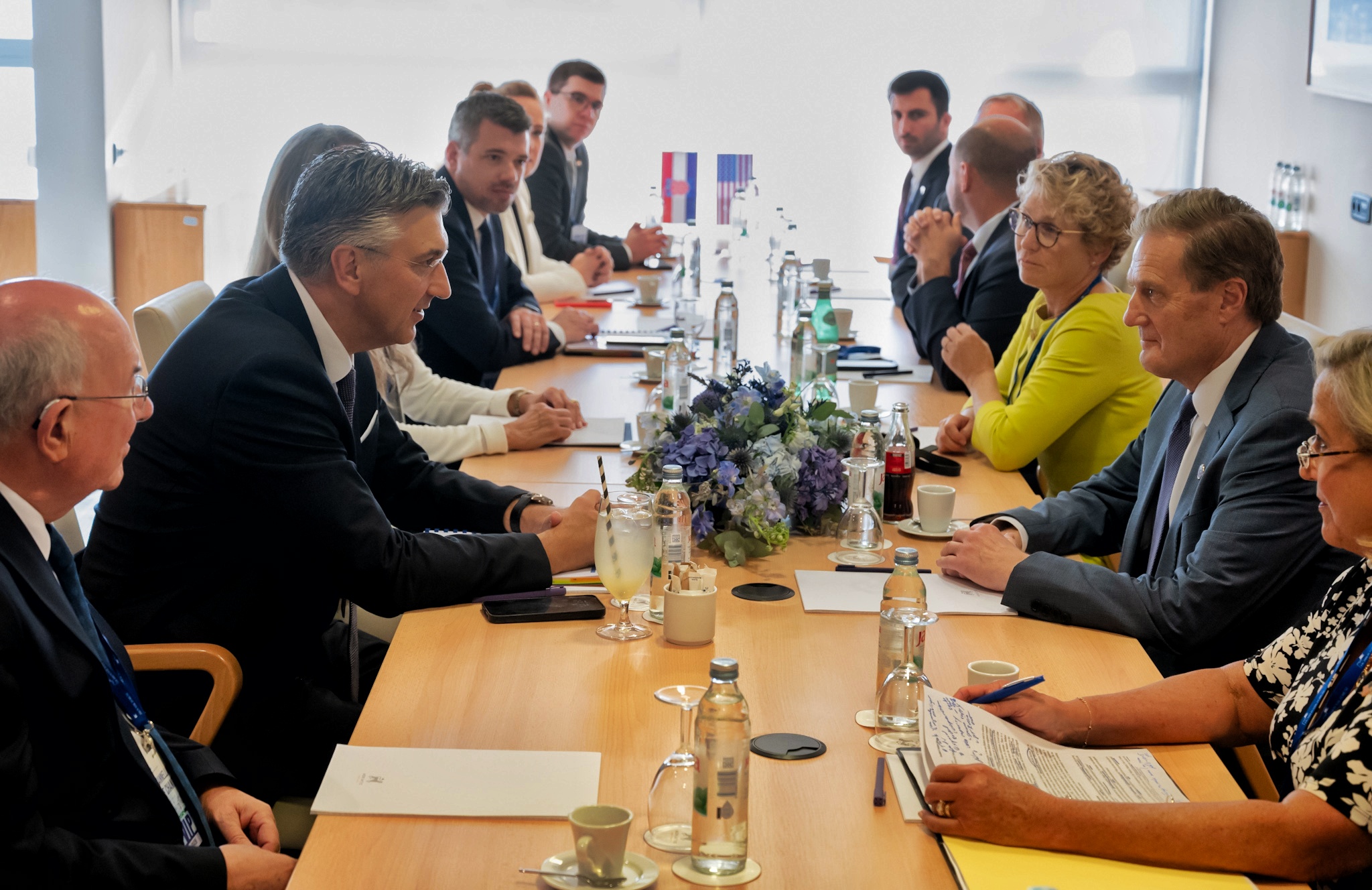 „Na posljednjem Europskom vijeću opširno smo raspravljali o tome kako postići neku vrstu konsenzusa koji nas u osnovi ne bi doveo u poziciju da jednog dana pristanemo potrošiti 5 posto na obranu, a sljedeći dan imamo nametanje carina koje štete našim gospodarskim subjektima. Hrvatska je jedna od onih zemalja koja podržava napore predsjednice Komisije Ursule von der Leyen i njenog tima, zajedno s američkim partnerima, da postignu dogovor“, kazao je.